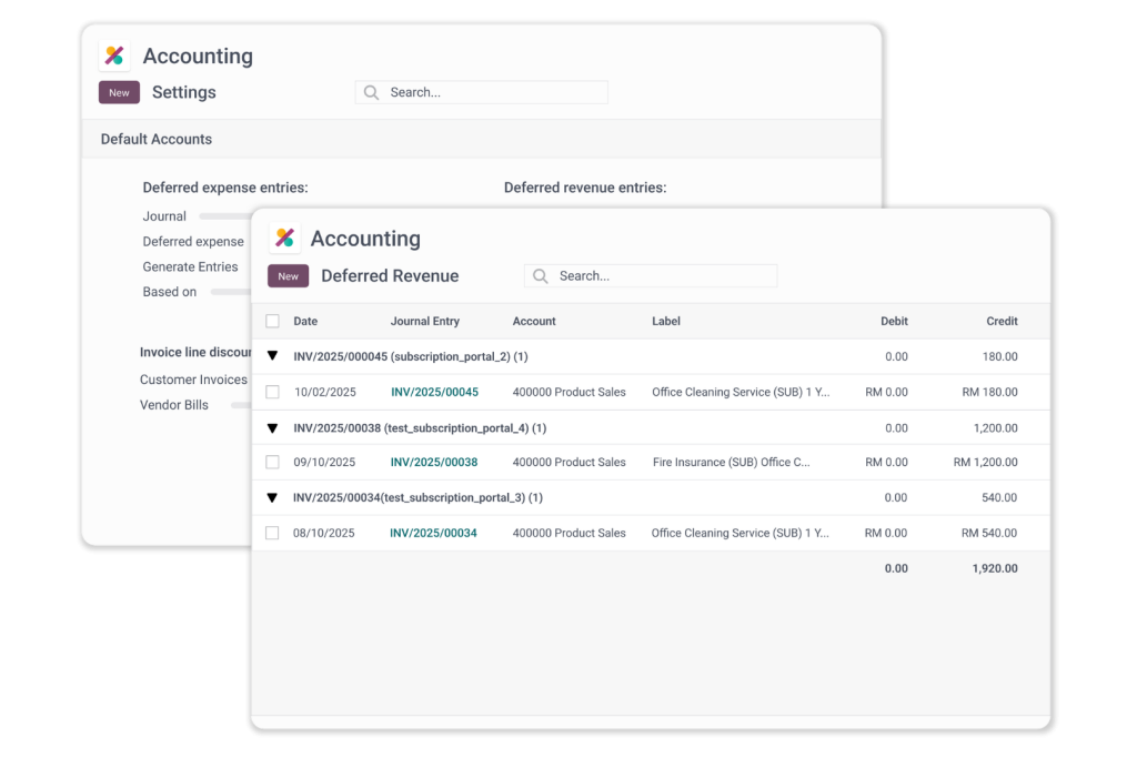 • Easily generate deferred expenses and revenue in draft mode, which will be posted periodically until the full amount is recognized, simplifying complex accounting processes.