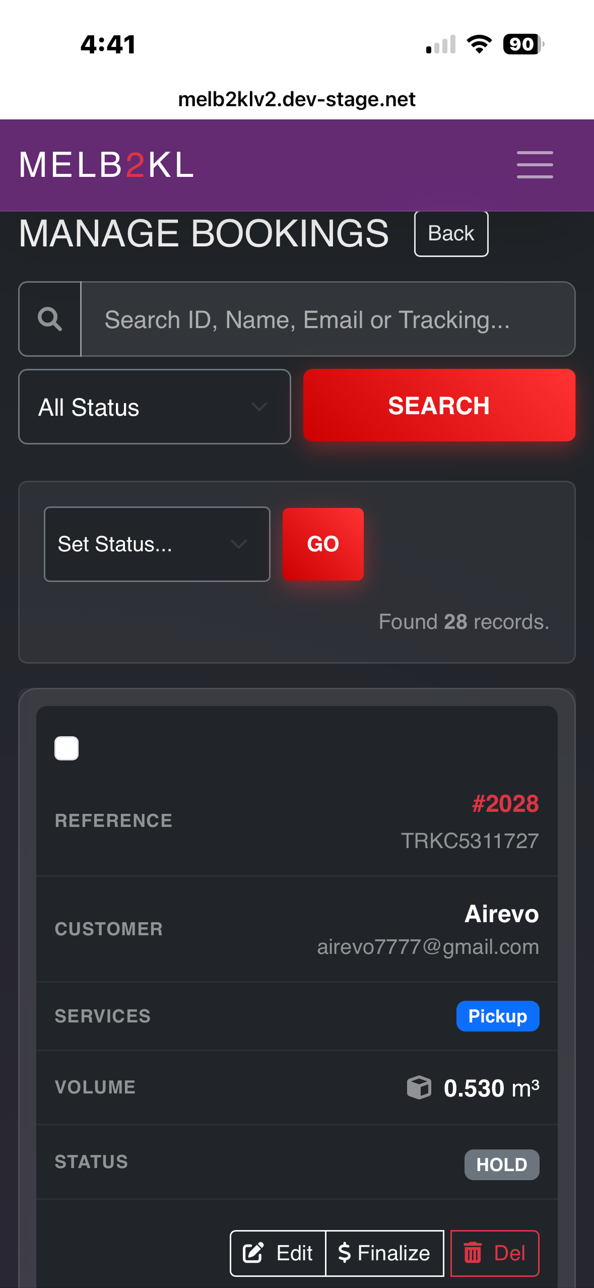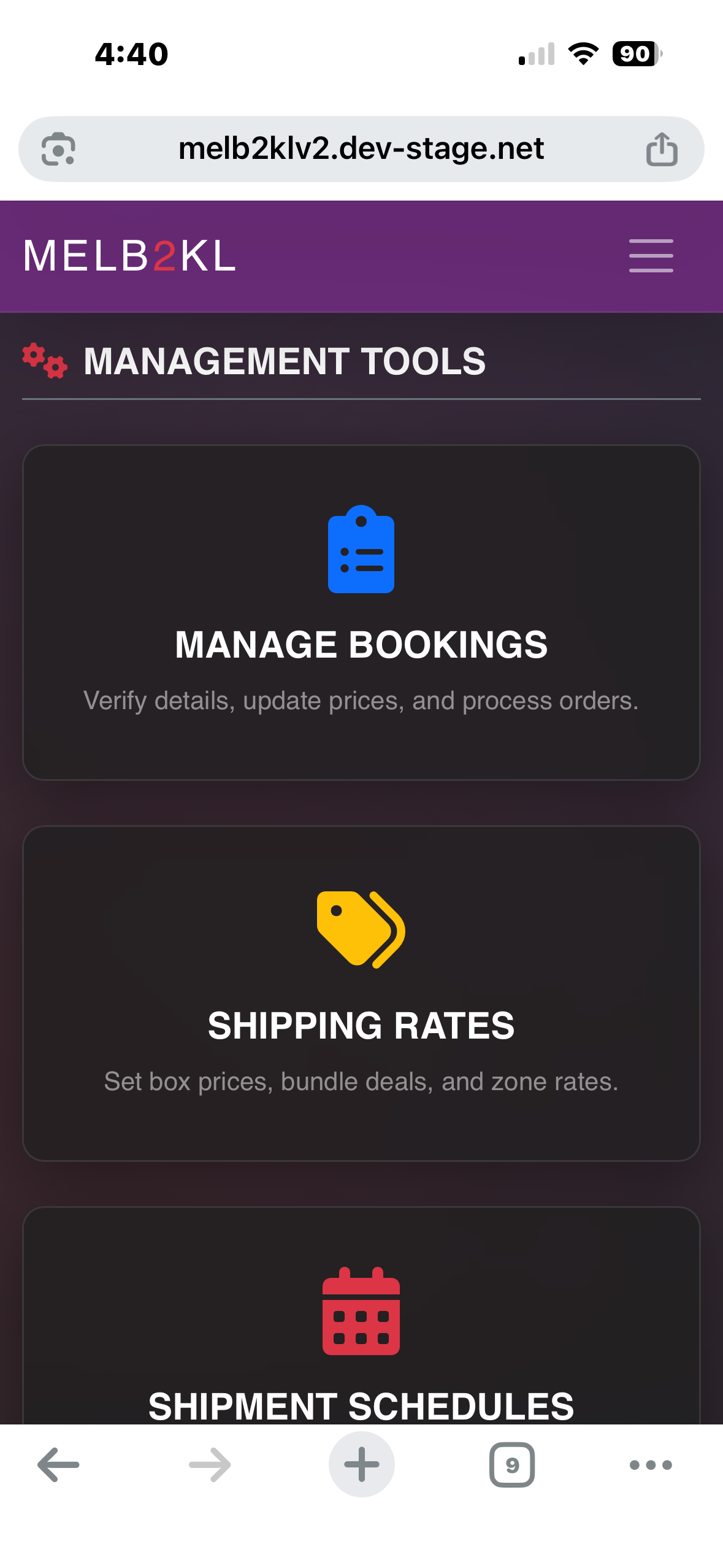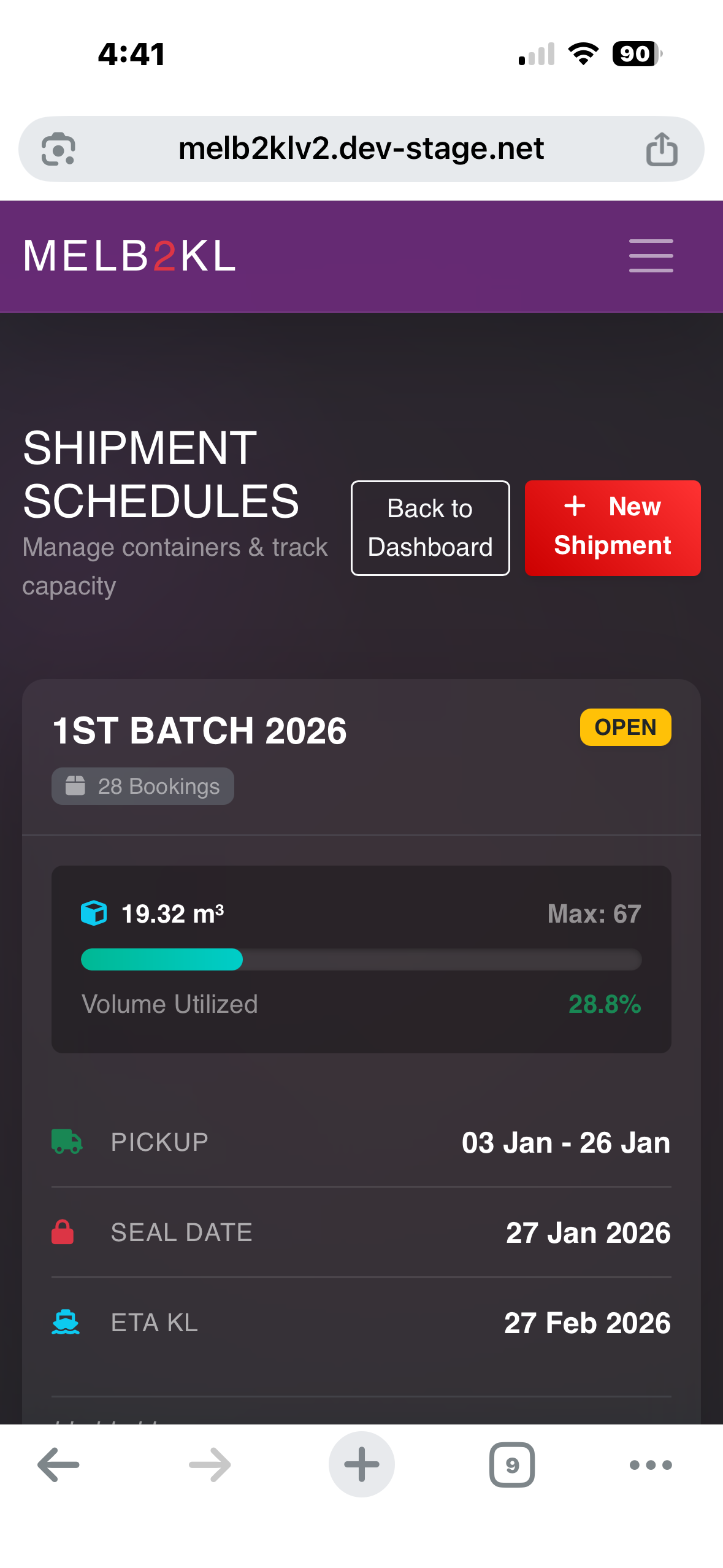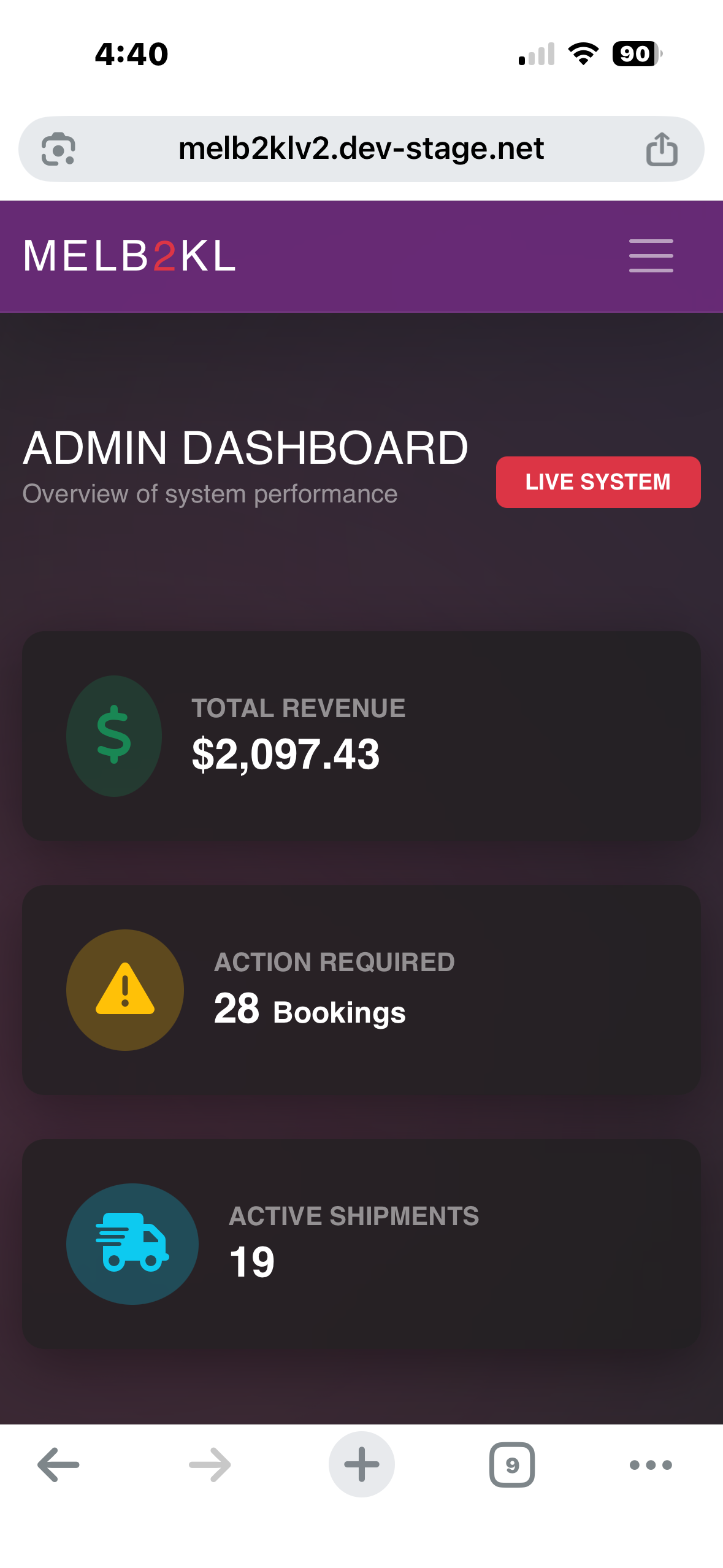 Overview: Melb2KL is a web-based logistics platform developed to manage the complexities of international personal freight. It replaces manual spreadsheet tracking with a centralized database and user portal, providing transparency for customers and operational efficiency for administrators.